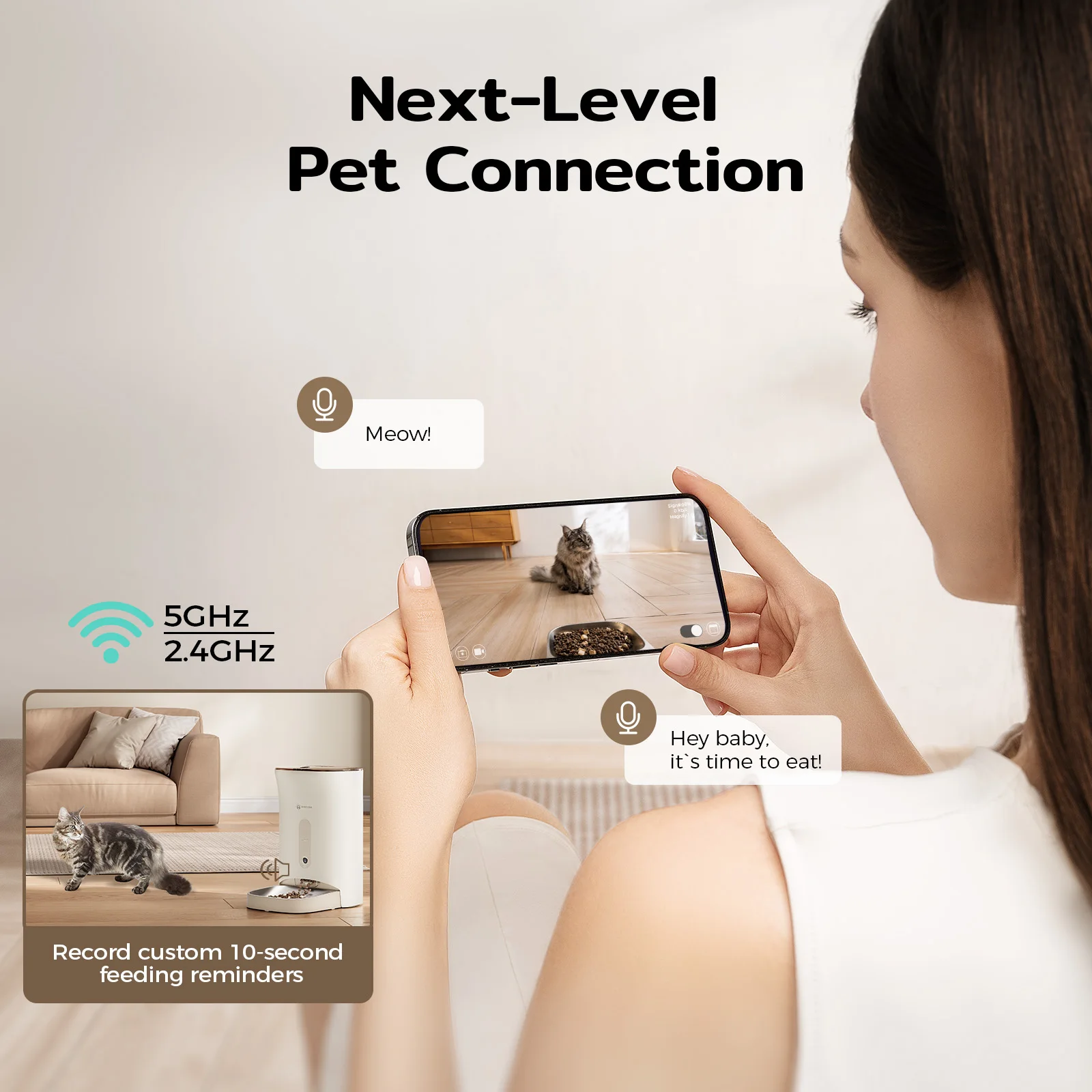 Record a 10‑second voice message to play at feeding time