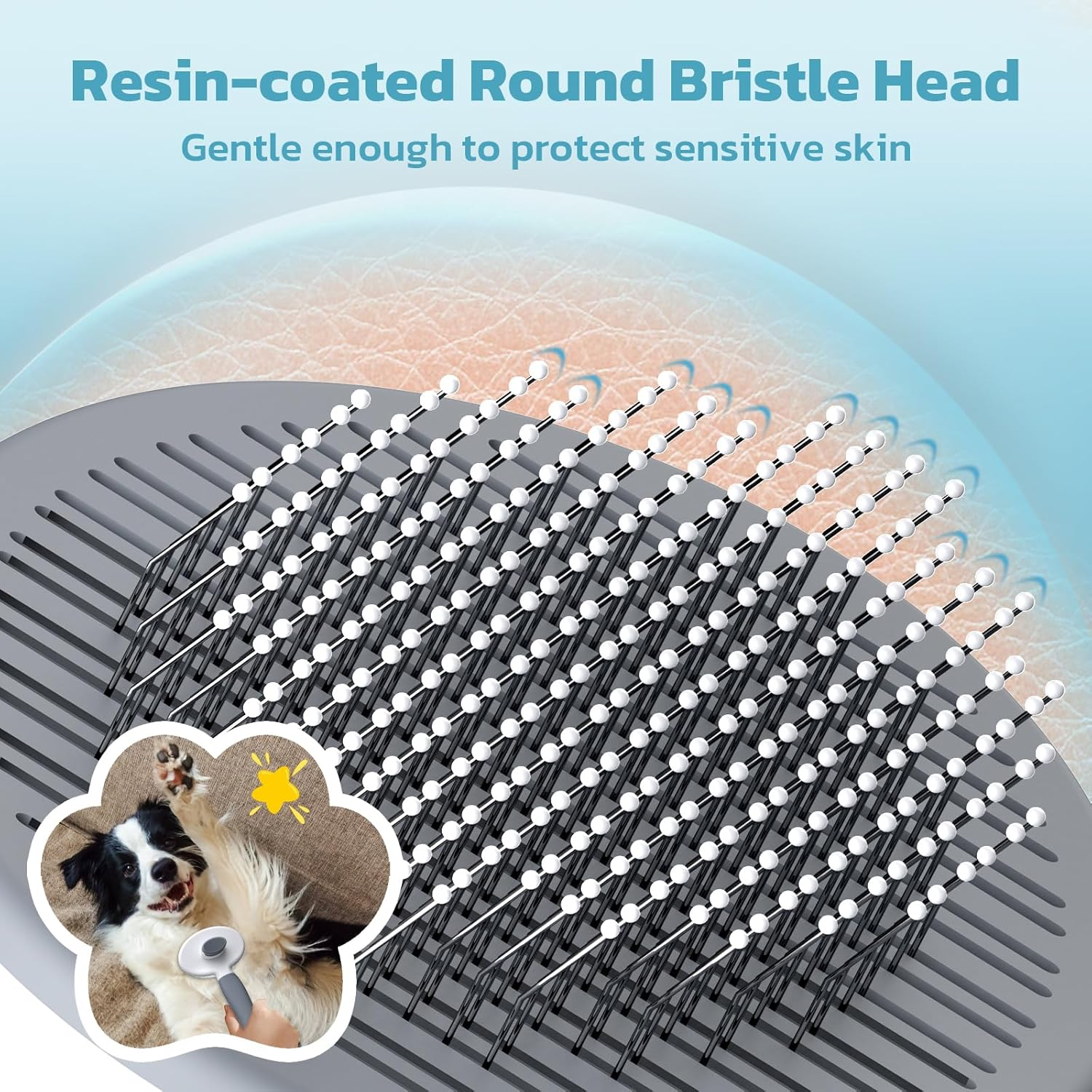 • [Rundkopf mit Harzbeschichtung] Mit einem vollständig mit Harz beschichteten Rundkopf massiert diese Tierhaarbürste sanft die Haut Ihres Haustiers, ohne Schaden zu verursachen. Sie eignet sich ideal, um das Fell Ihres Haustiers glatt und knotenfrei zu halten.